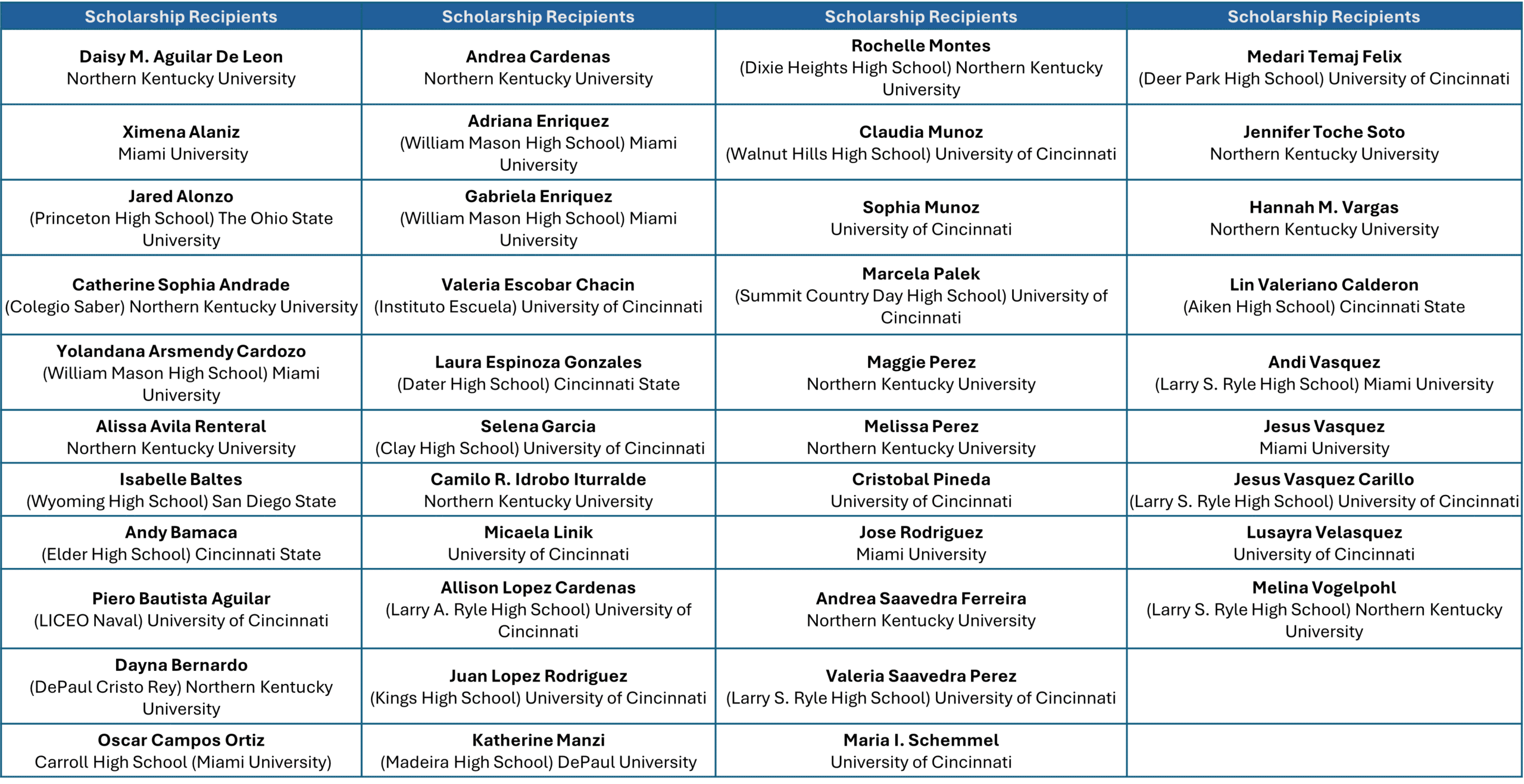 Scholarship Recipients